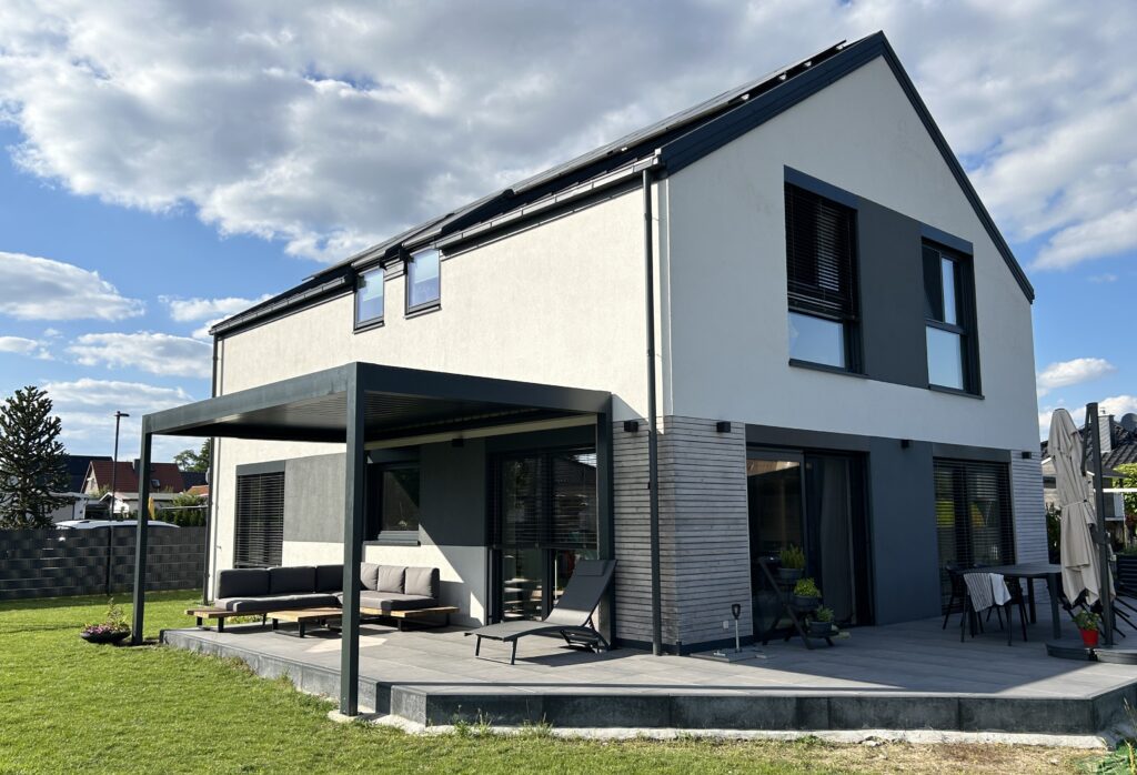 Bei diesem Projekt handelt es sich um ein modernes Einfamilienhaus in Holzständerbauweise mit Steico-Technologie. Das Gebäude wurde als hochenergieeffizientes KfW 40+ Haus konzipiert und umgesetzt.
